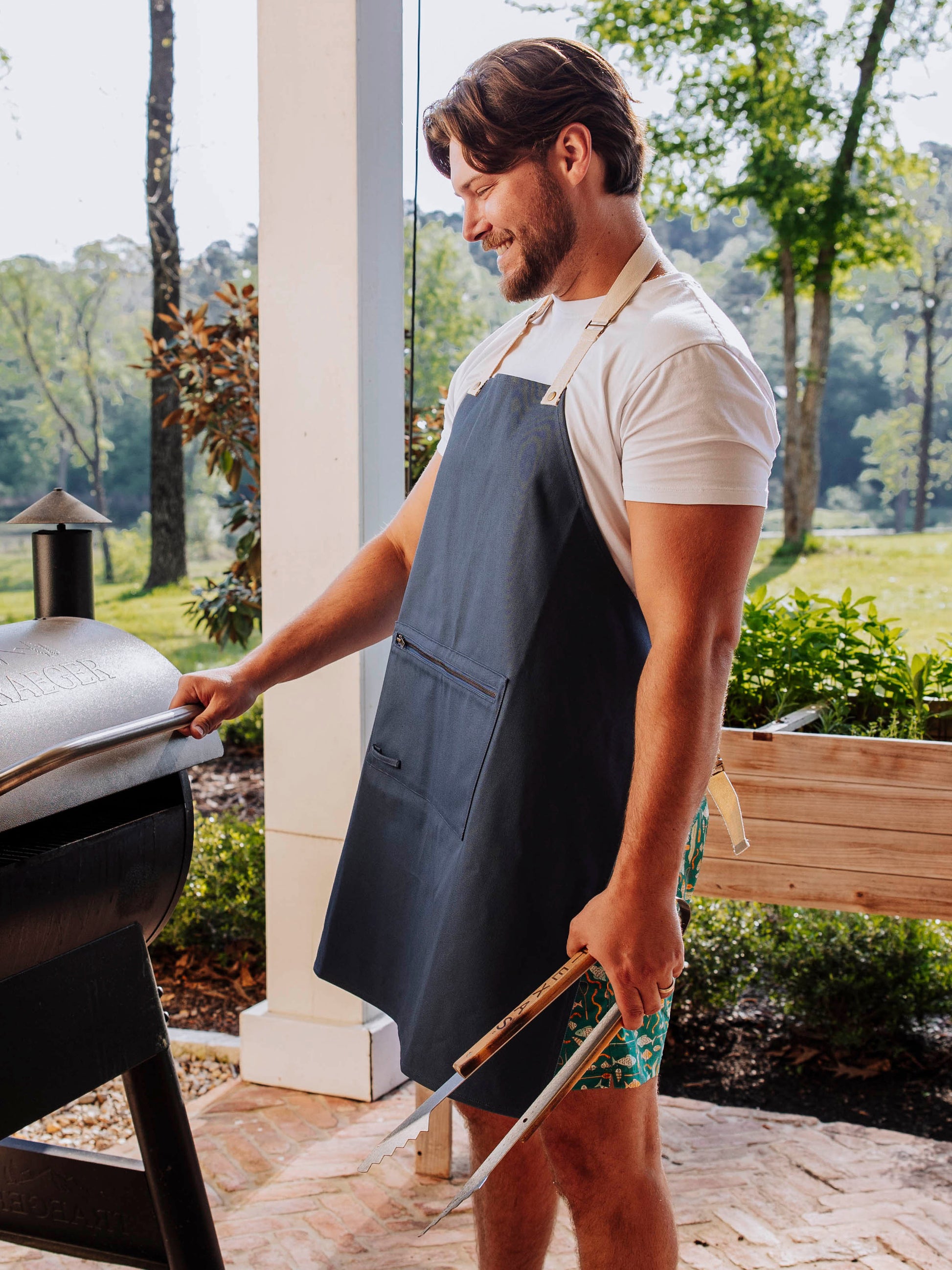 Designed with both practicality and functionality, this apron makes an excellent gift for any occasion! Made from durable waxed canvas, it features both an adjustable neck strap and waist strap to allow for a custom fit! Waist straps made with a quick release, metal clasp as well. Featured on the front is a deep pocket with zipper closure perfect for holding all of his cooking gadgets! Also included on the pocket is a utility loop convenient for holding small utensils or towels! The new Navy Apron was designed by Men, for Men!